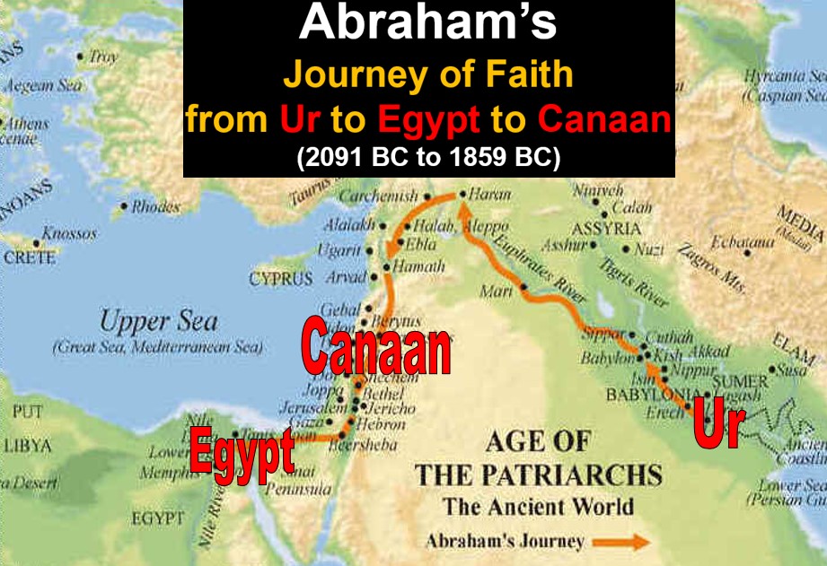 In Genesis Chapter 12, God called Abram (later renamed Abraham) to take his wife Sarai (later renamed Sarah) and his flocks and leave his people and his father’s household in the land of Ur of the Chaldees and go (by faith) to a distant land that only God would show him. Because Abraham obeyed God's request without hesitation, God made this eternal covenant with him.