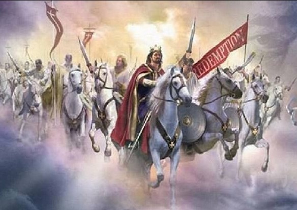"Now I saw heaven opened, and behold, a white horse. And He who sat on him was called Faithful and True, and in righteousness He judges and makes war. His eyes were like a flame of fire, and on His head were many crowns. He had a name written that no one knew except Himself. He was clothed with a robe dipped in blood, and His name is called The Word of God. And the armies in heaven, clothed in fine linen, white and clean, followed Him on white horses. Now out of His mouth goes a sharp sword, that with it He should strike the nations. And He Himself will rule them with a rod of iron. He Himself treads the winepress of the fierceness and wrath of Almighty God. And He has on His robe and on His thigh a name written: KING OF KINGS AND LORD OF LORDS."
